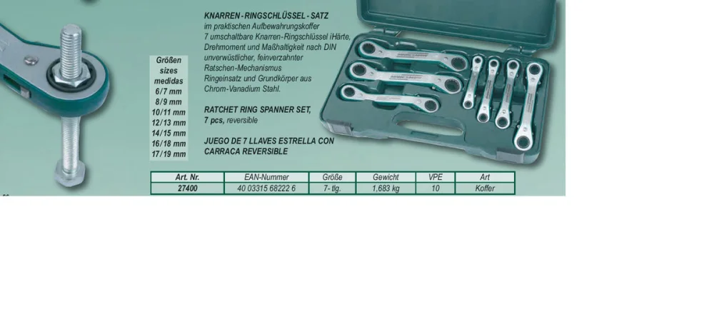 Dimensiuni chei: 6 x 7, 8 x 9, 10 x 11, 12 x 13, 14 x 15, 16 x 18, 17 x 19